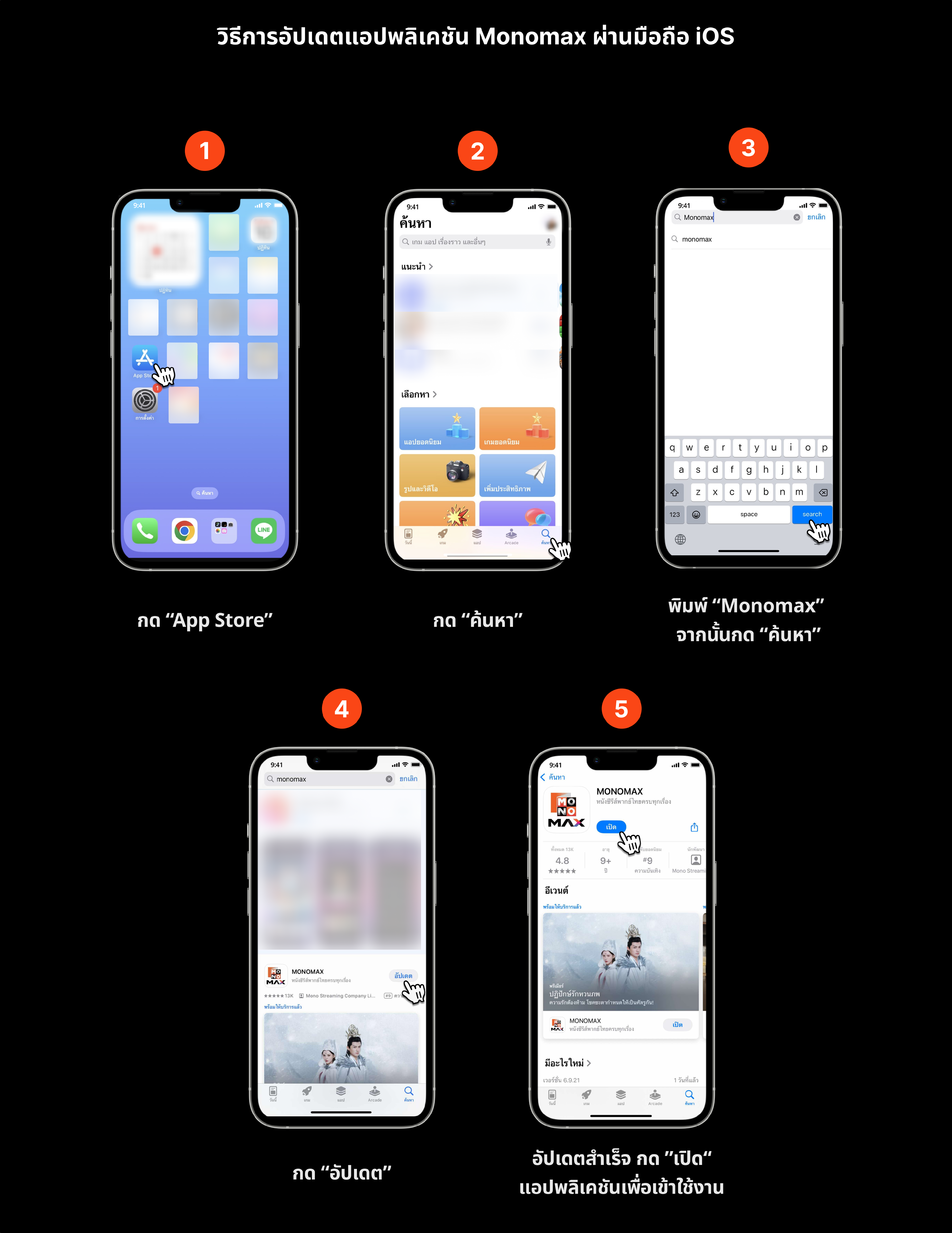 วิธีการอัปเดตแอปพลิเคชัน Monomax ผ่านมือถือ iOS