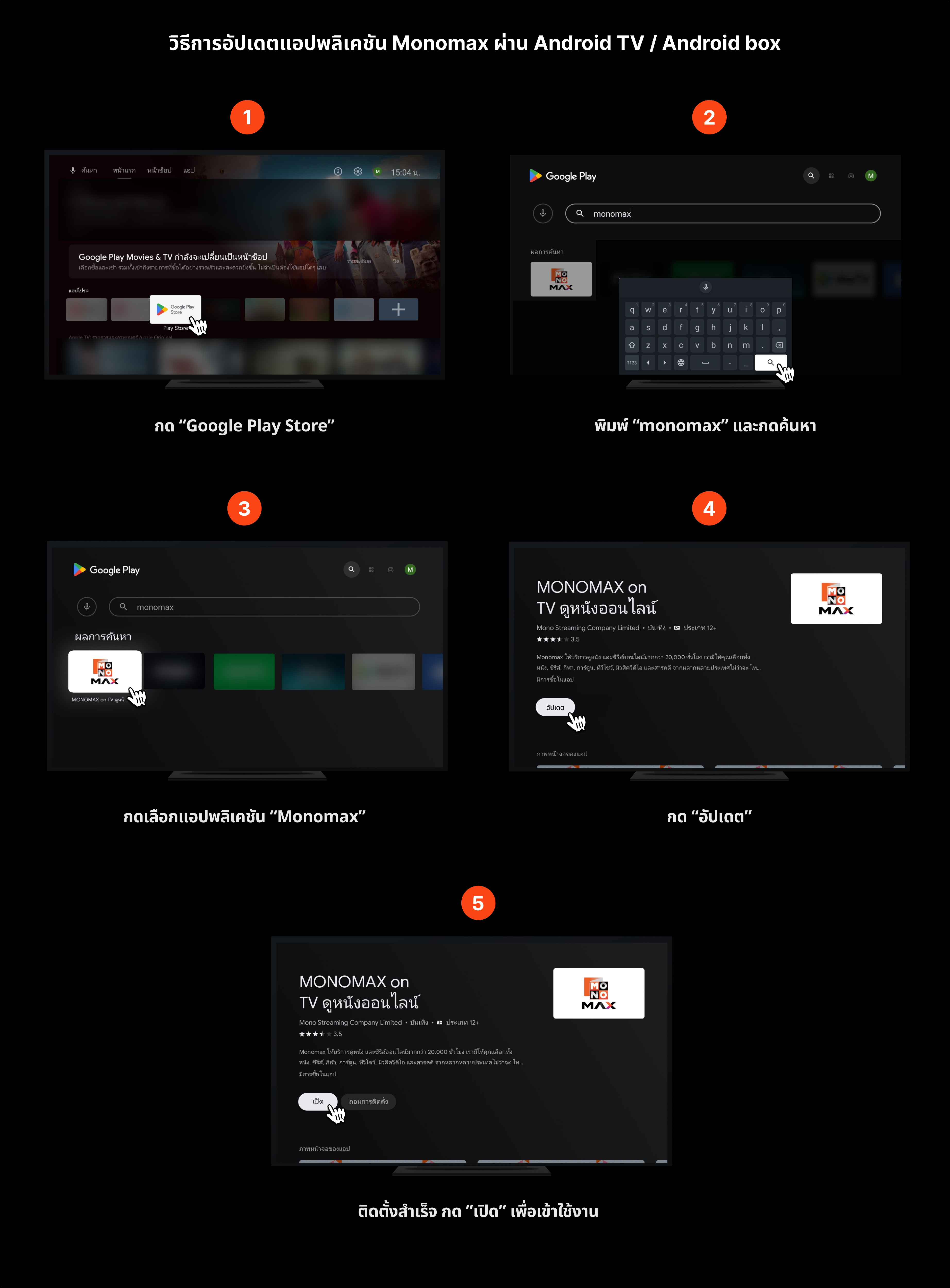 วิธีการอัปเดตแอปพลิเคชัน Monomax ผ่าน Android TV / Android box