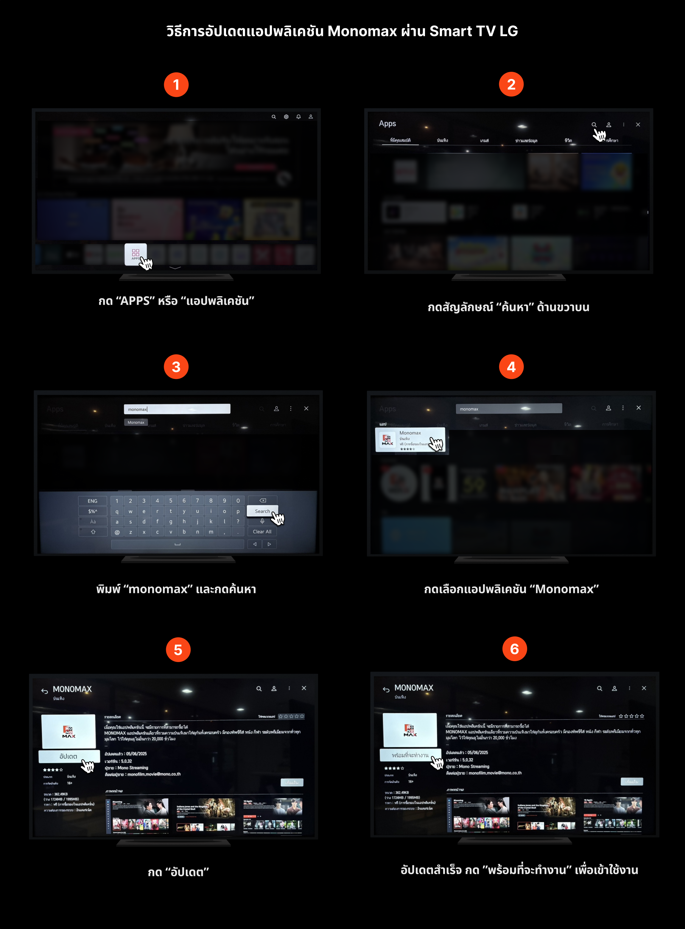 วิธีการอัปเดตแอปพลิเคชัน Monomax ผ่าน Smart TV LG