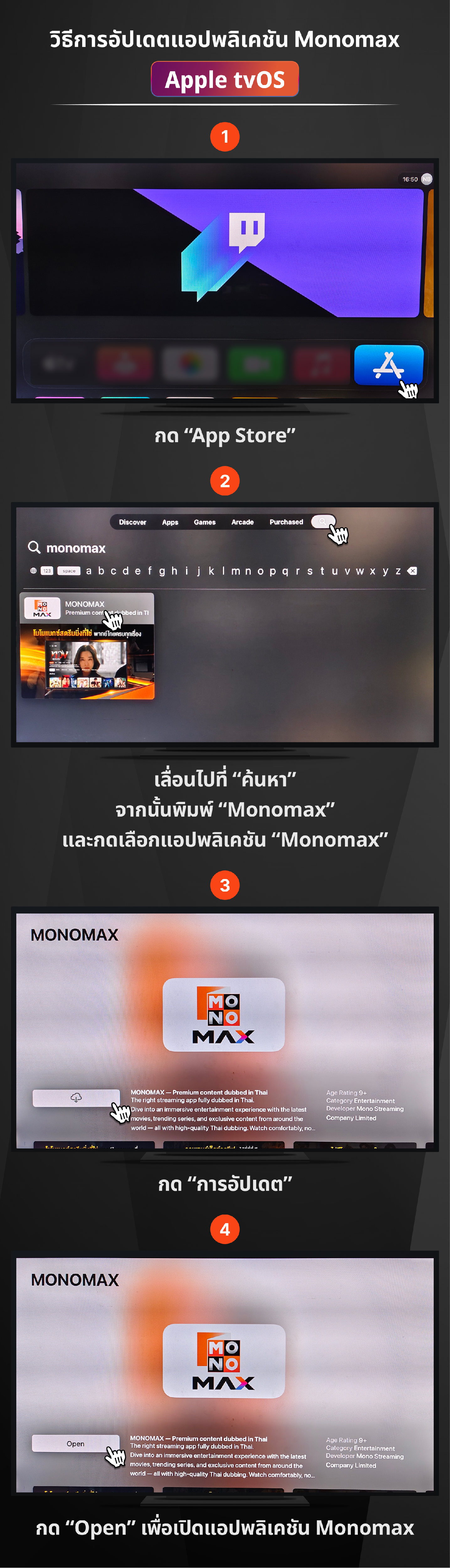 วิธีการอัปเดตแอปพลิเคชัน Monomax ผ่าน Apple tvOS