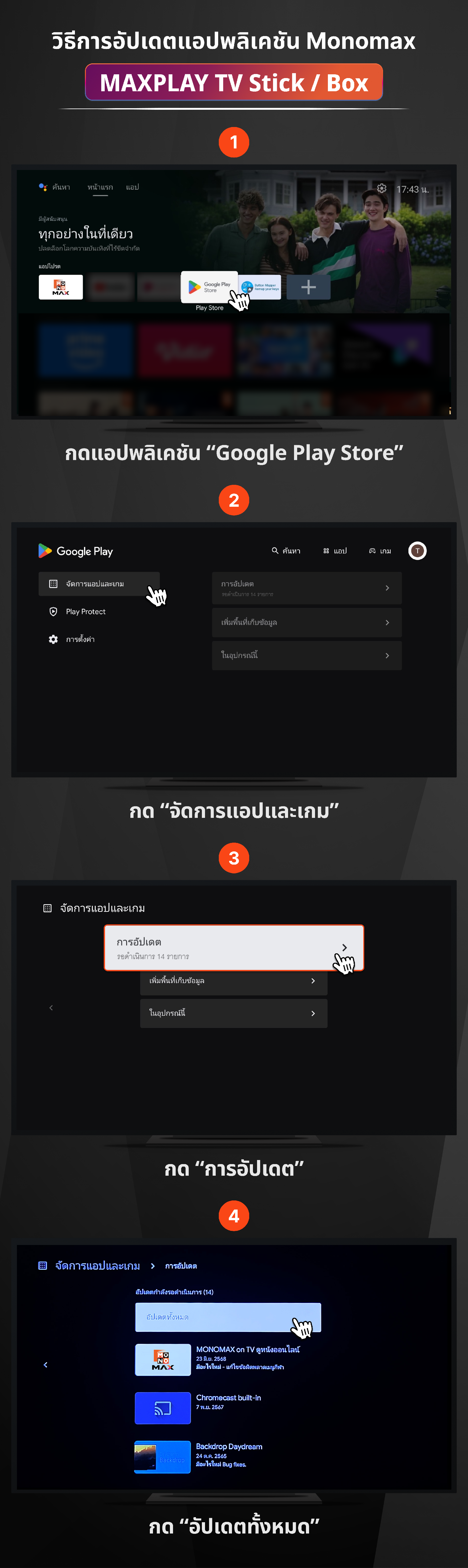 วิธีการอัปเดตแอปพลิเคชัน Monomax ผ่าน MAXPLAY TV Stick /Box