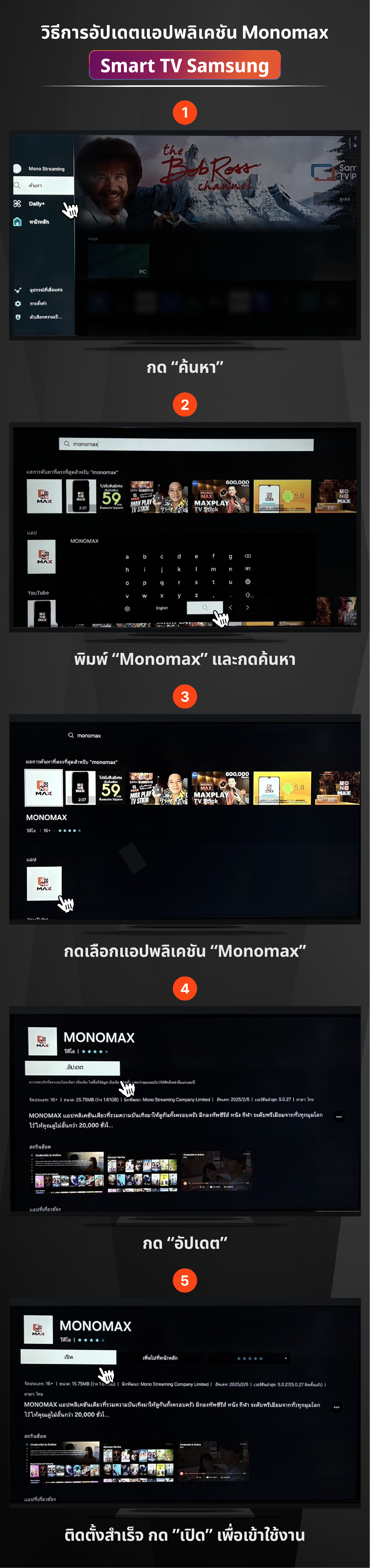 วิธีการอัปเดตแอปพลิเคชัน Monomax ผ่าน Smart TV Samsung