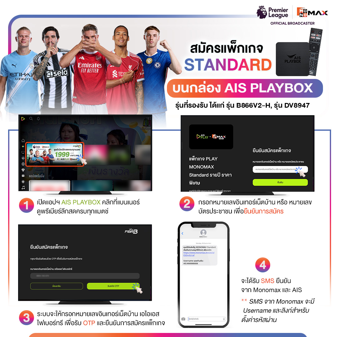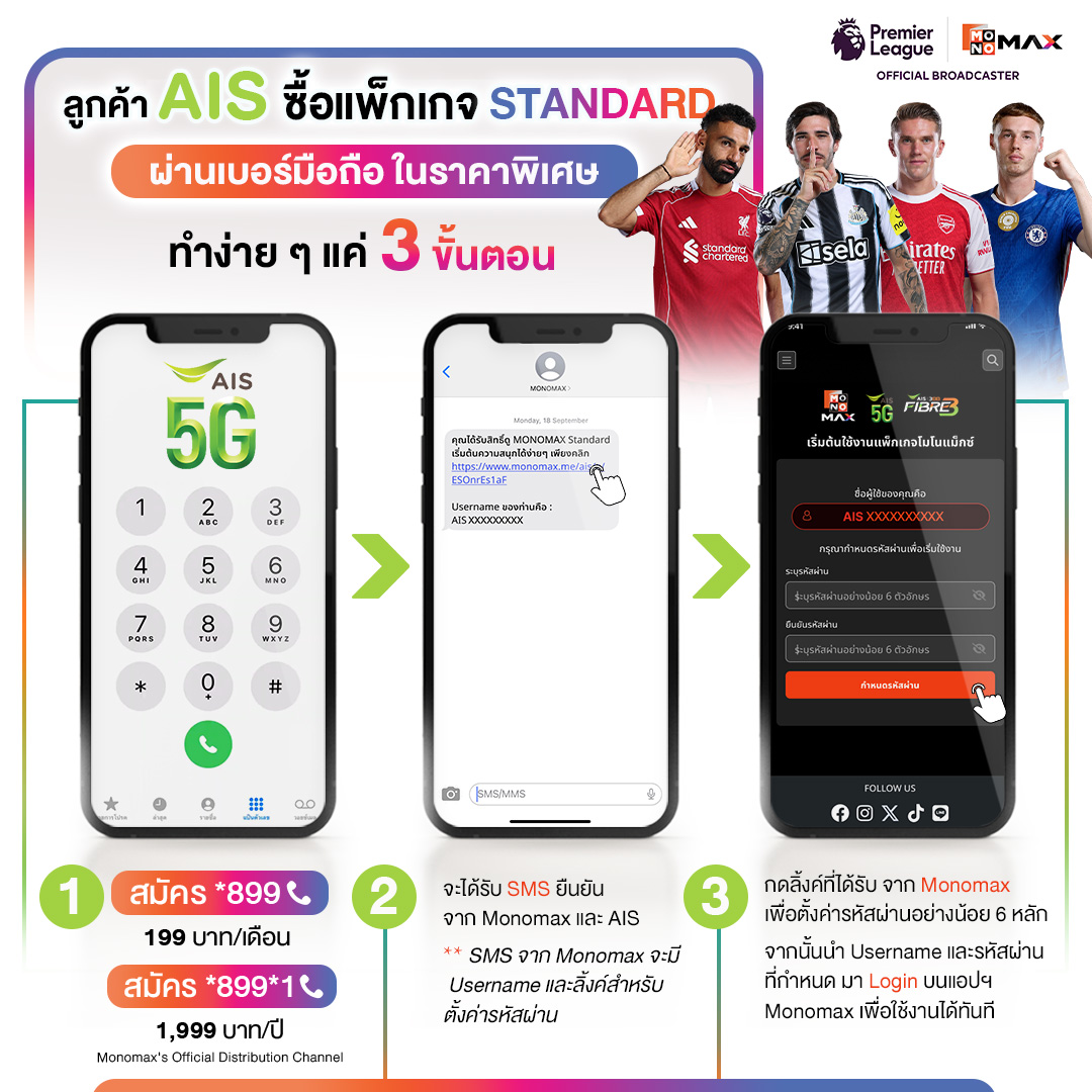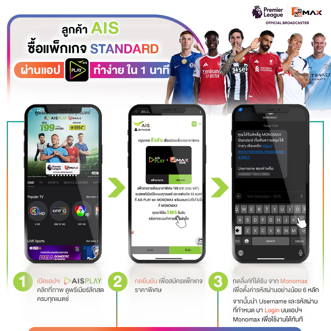 4.4 จะได้รับ SMS ยืนยัน จาก Monomax เละ AIS