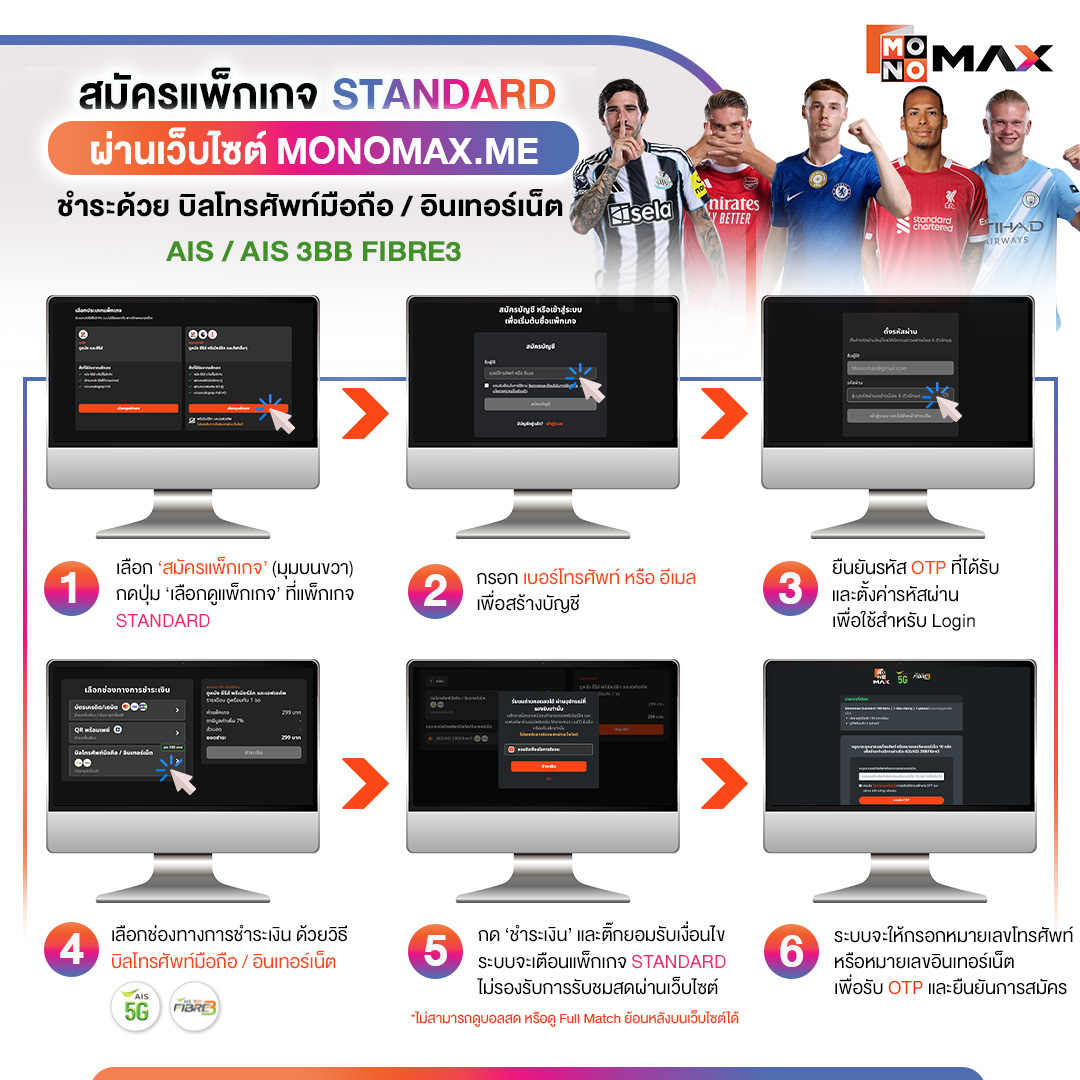 5.วิธีการซื้อแพ็กเกจสแตนดาร์ด สำหรับลูกค้า AIS ผ่านเว็บไซต์ MONOMAX.ME