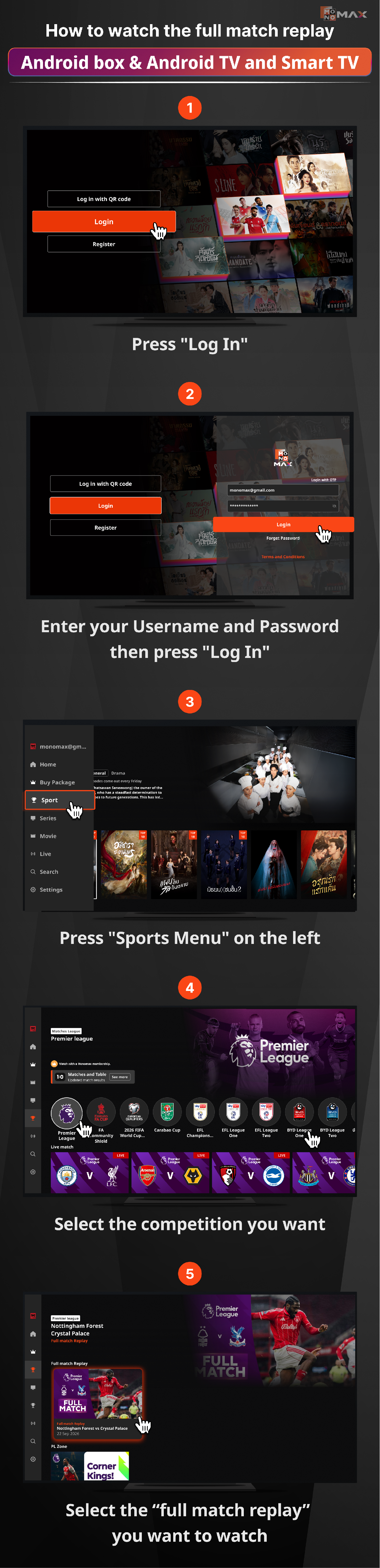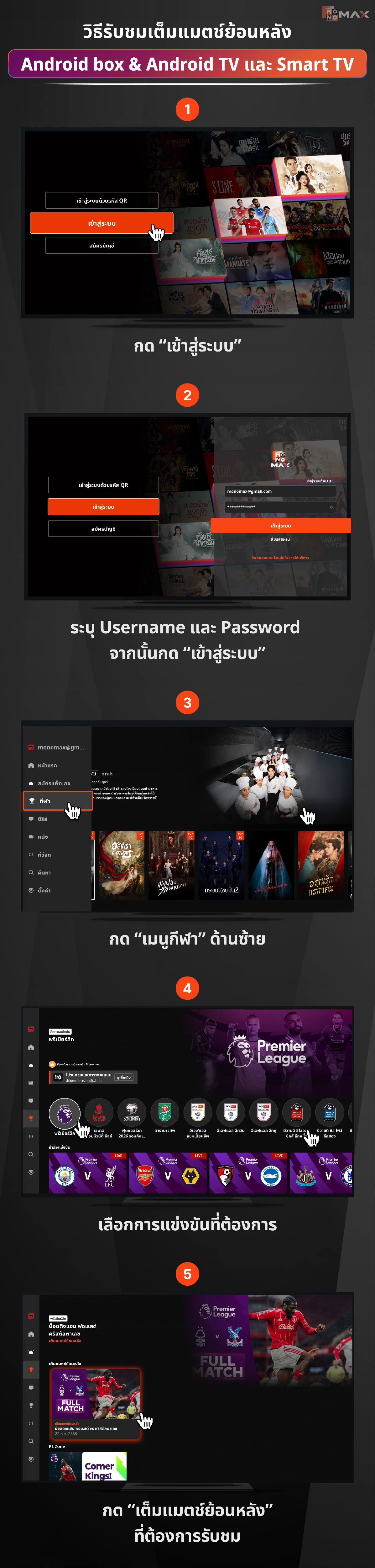 วิธีรับชมเต็มแมตช์ย้อนหลัง Android box & Android TV และ Smart TV