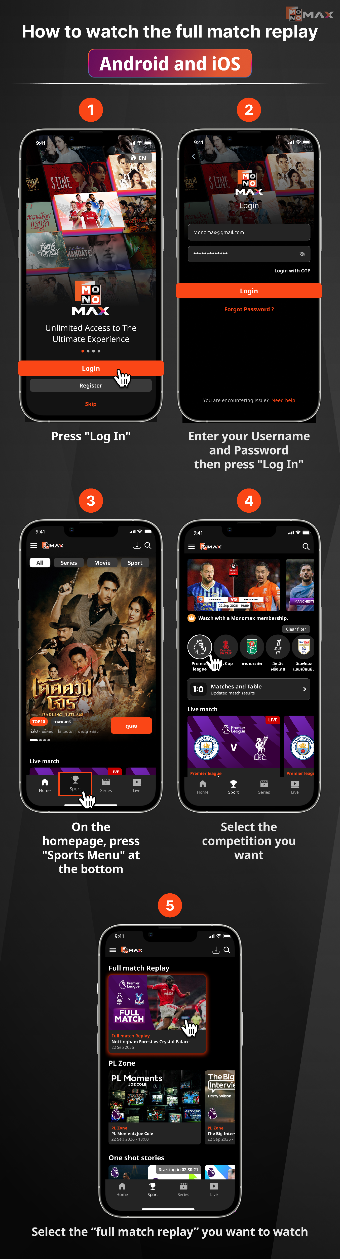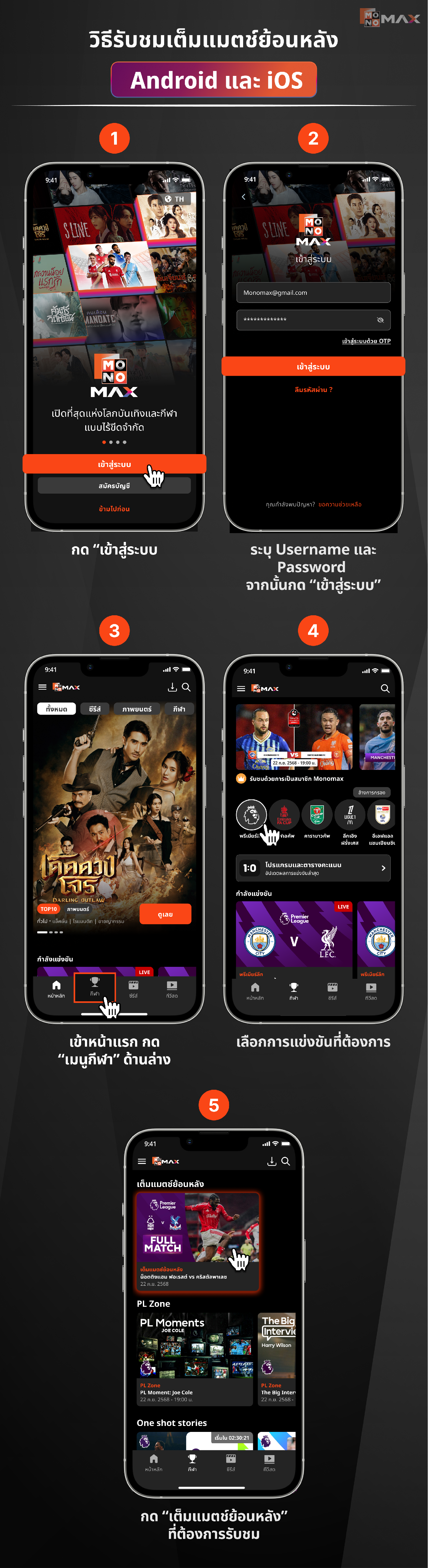 วิธีรับชมเต็มแมตช์ย้อนหลัง Android และ iOS