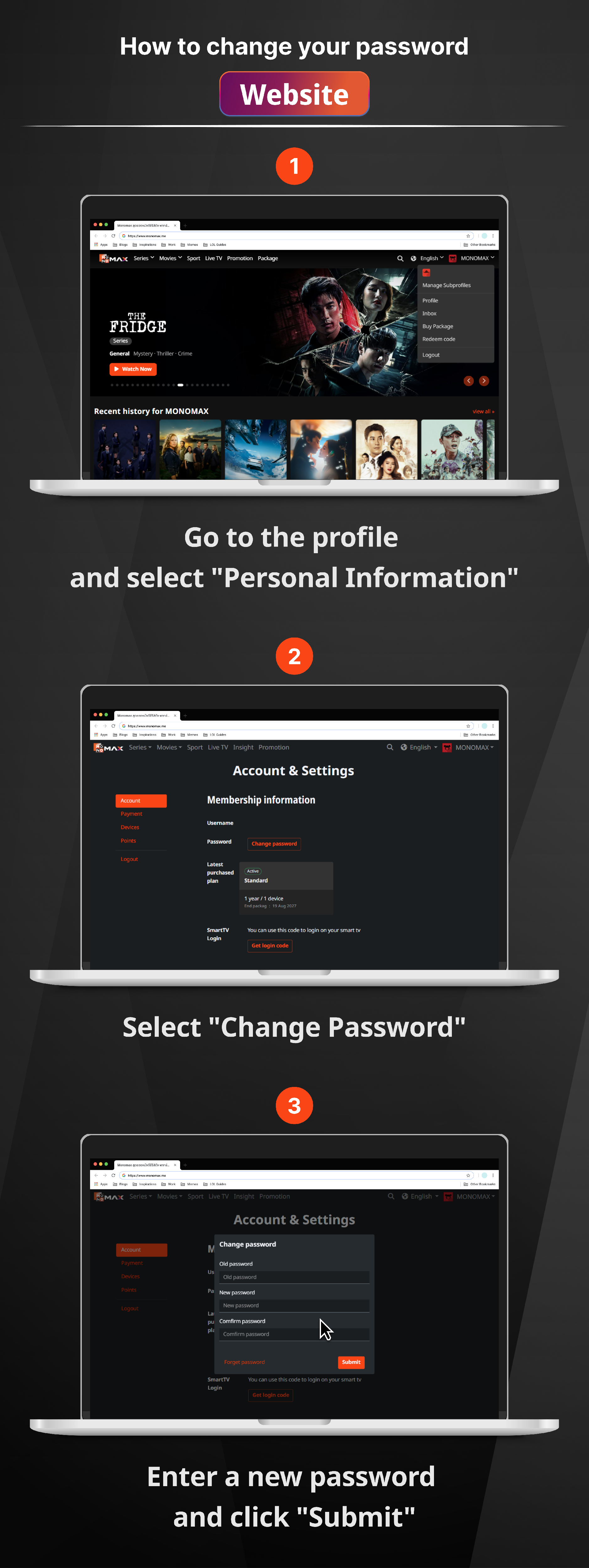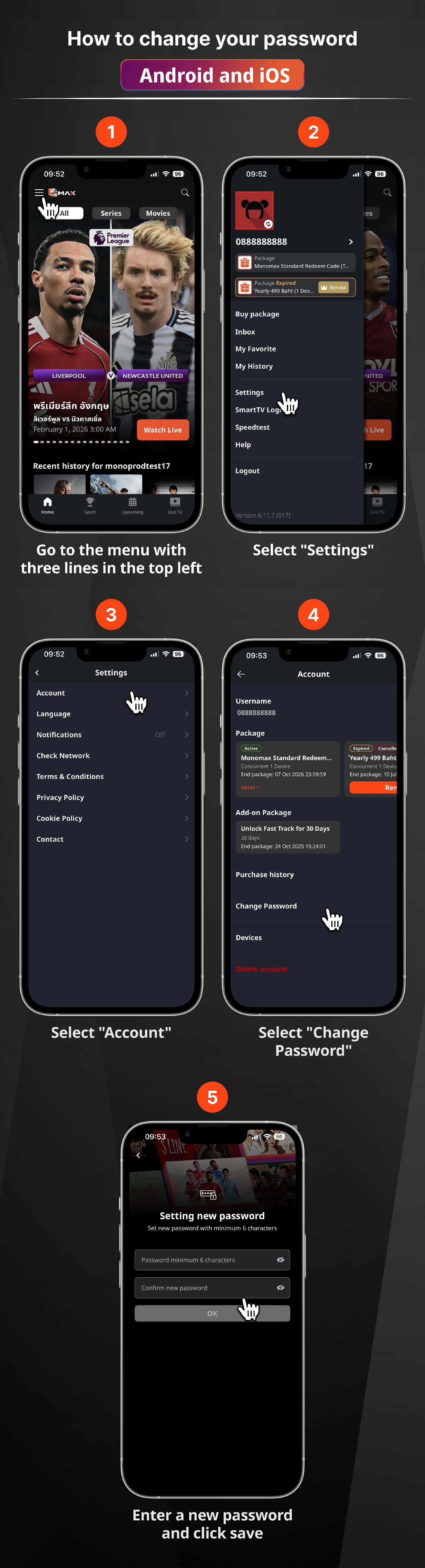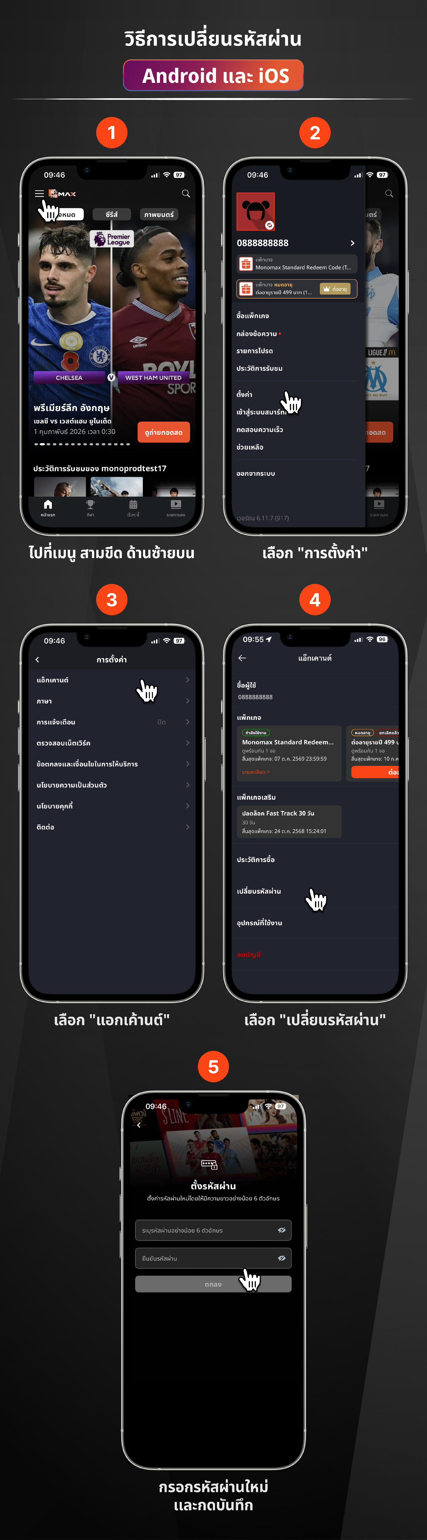 หากต้องการเปลี่ยนรหัสผ่านบัญชี มีขั้นตอนดังนี้