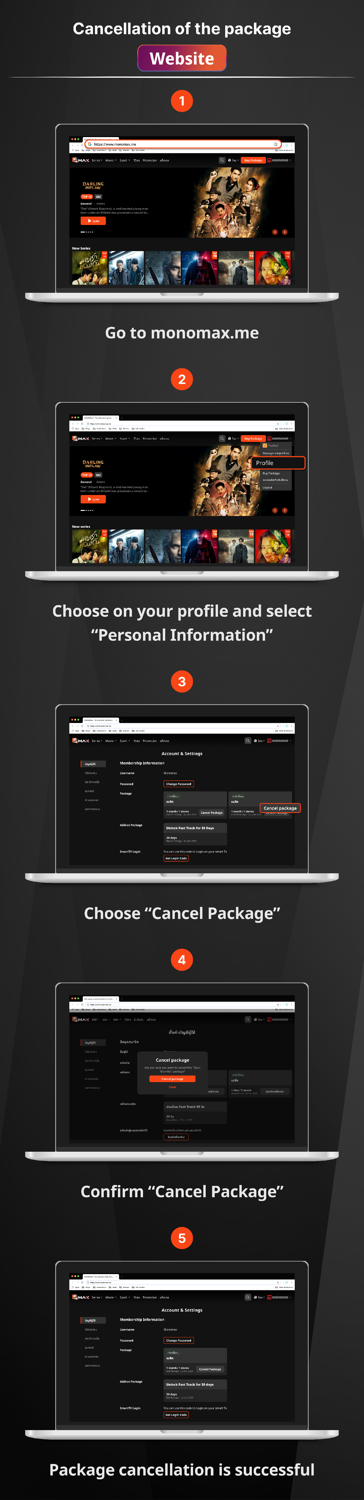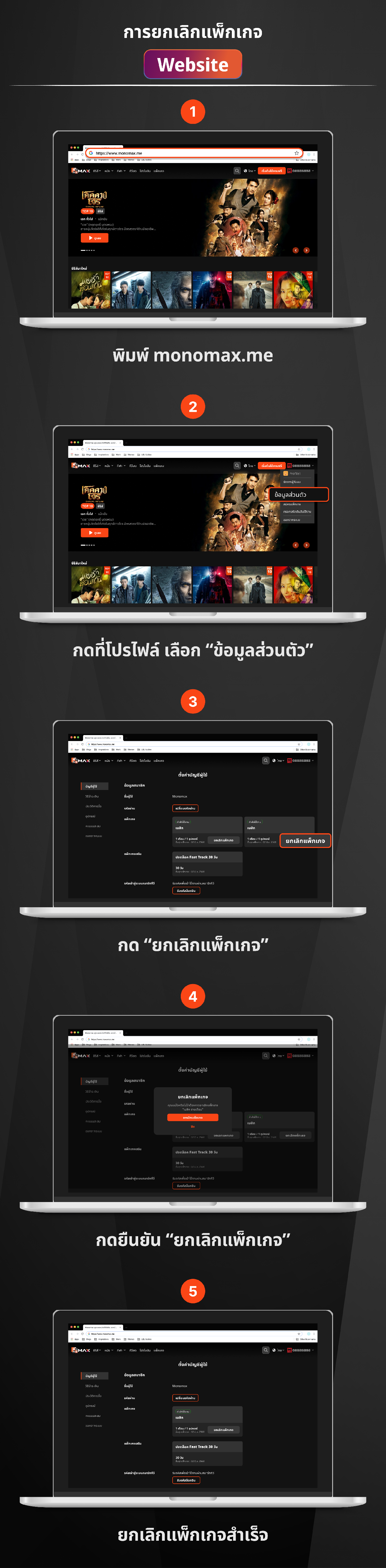 ขั้นตอนการยกเลิกแพ็กเกจบนเว็ปไซต์