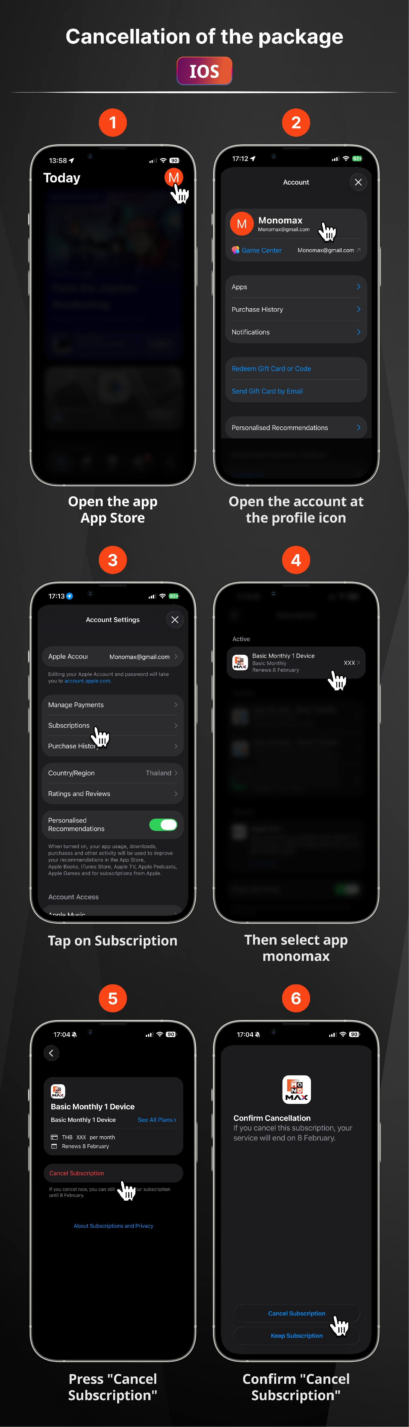 ขั้นตอนการยกเลิกแพ็กเกจบนแอปพลิเคชันระบบ iOS