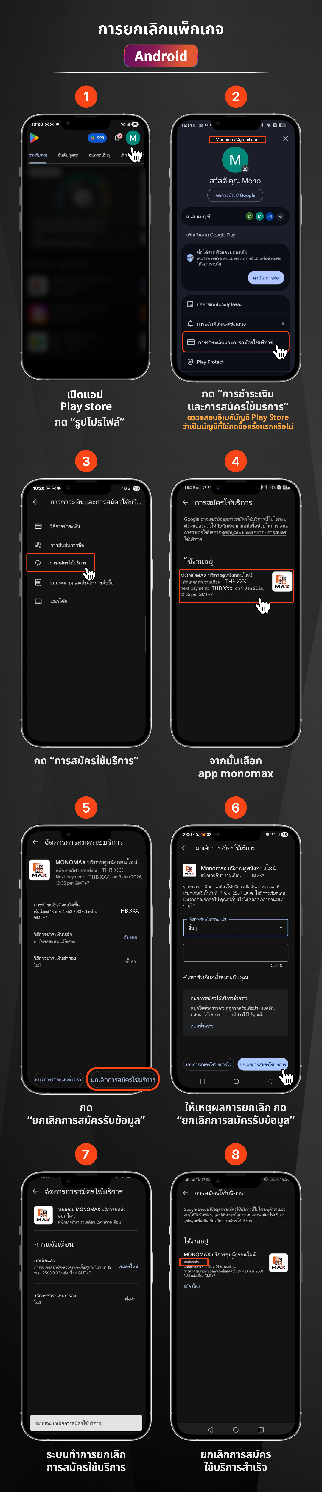ขั้นตอนการยกเลิกแพ็กเกจบนแอปพลิเคชันระบบ Android