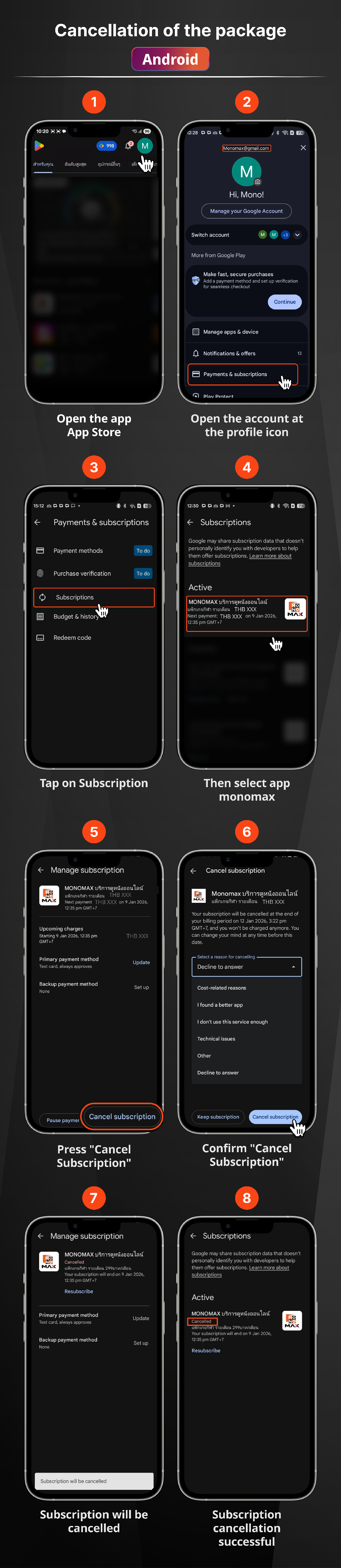For customers who pay via Debit/Credit card, ShopeePay, and AIS (Prepaid/Postpaid), you can cancel the package by yourself as follows: