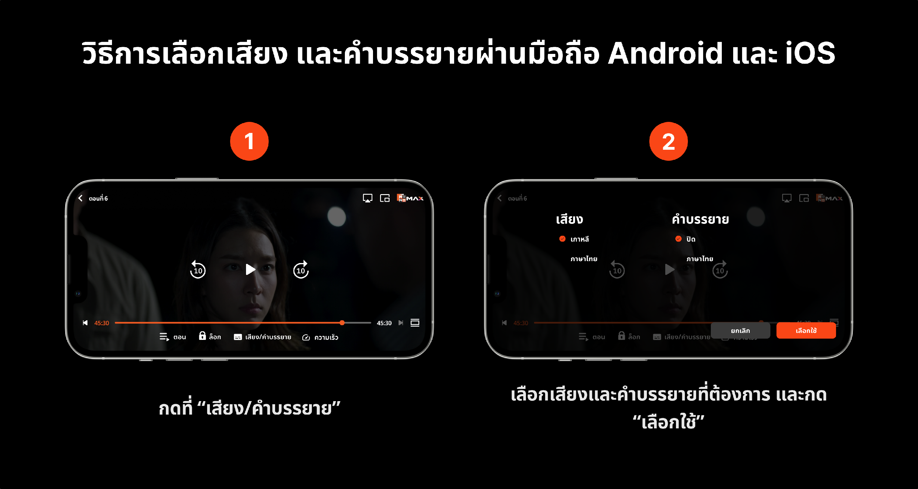 วิธีการเลือกเสียง และคำบรรยายผ่านมือถือ Android และ iOS