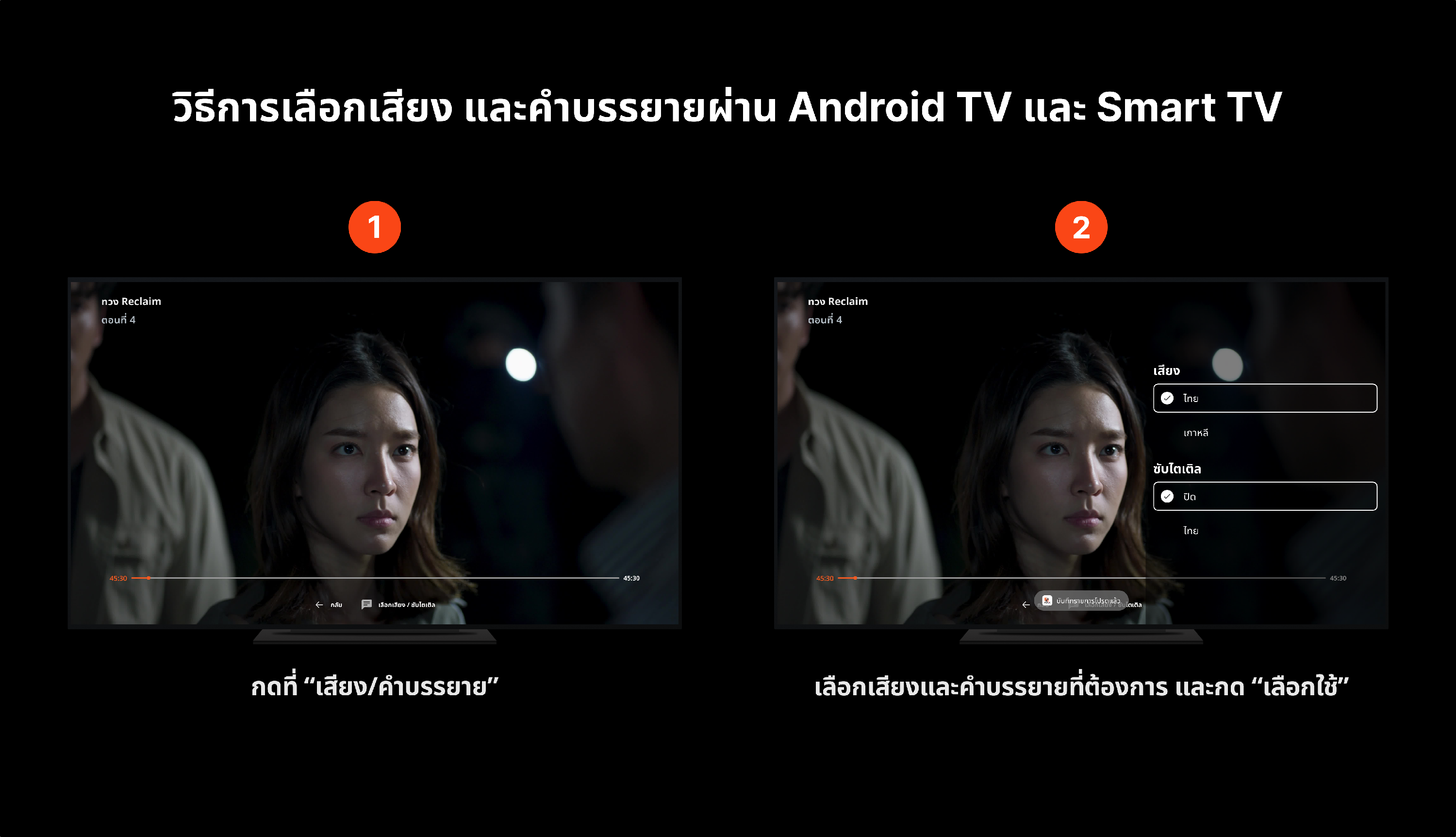 วิธีการเลือกเสียง และคำบรรยายผ่าน Android TV และ Smart TV