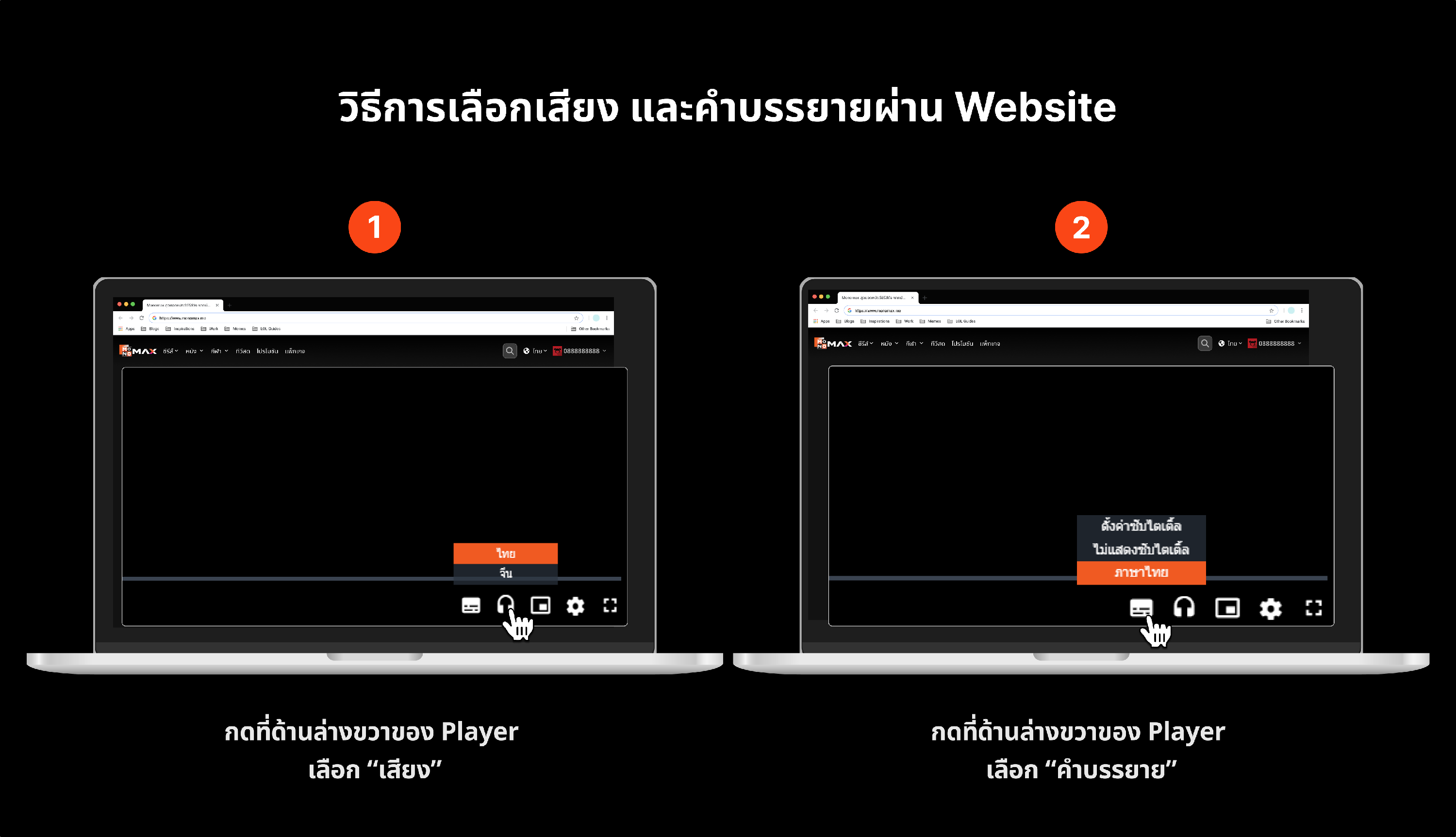 วิธีการเลือกเสียง และคำบรรยายผ่าน Website