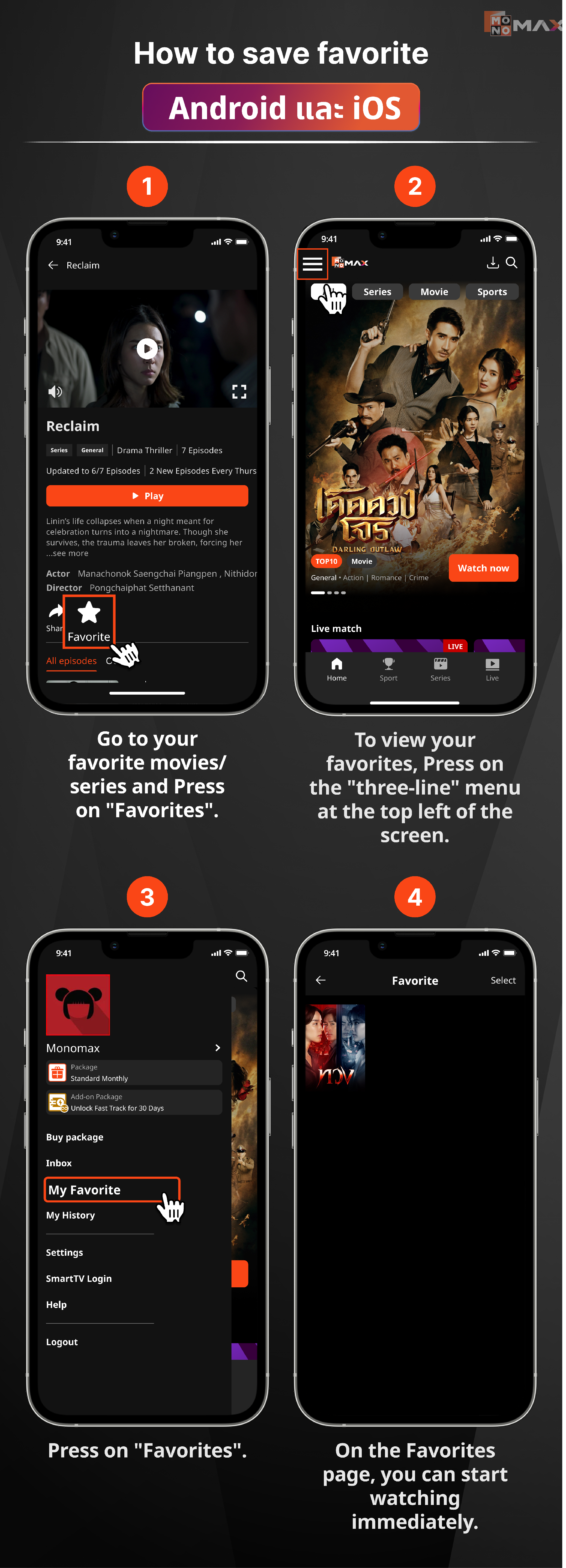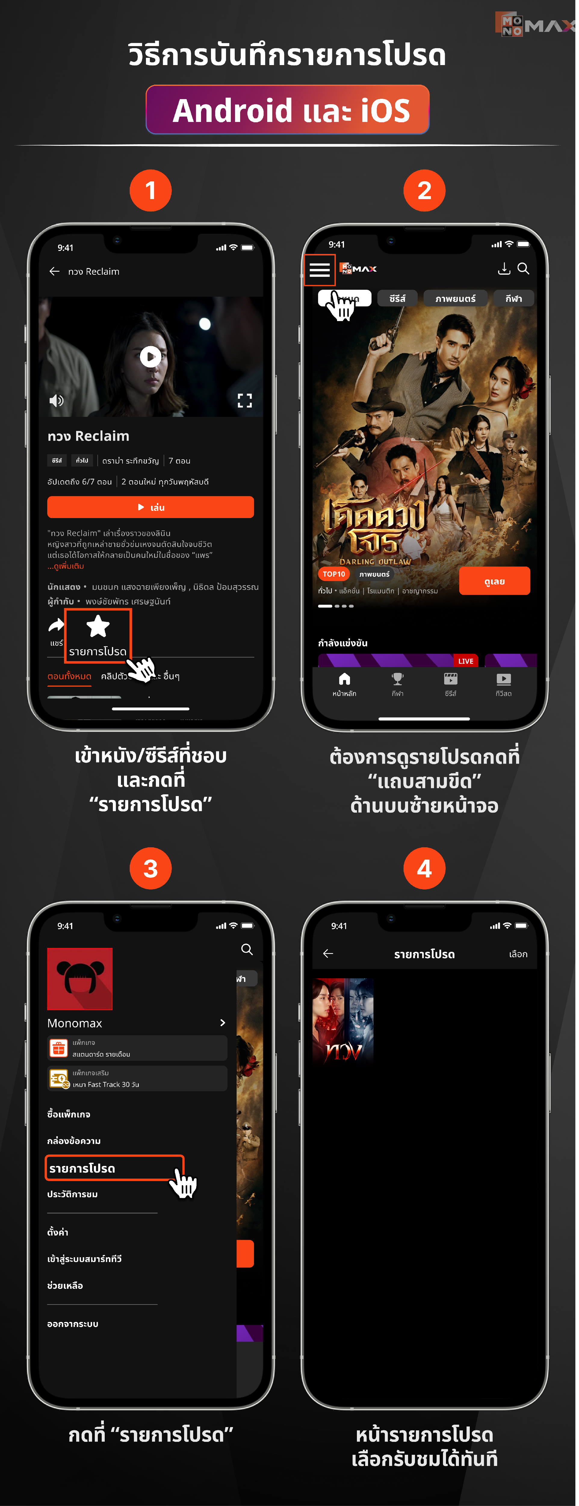 - เเอปพลิเคชัน MONOMAX บน Android และ iOS
