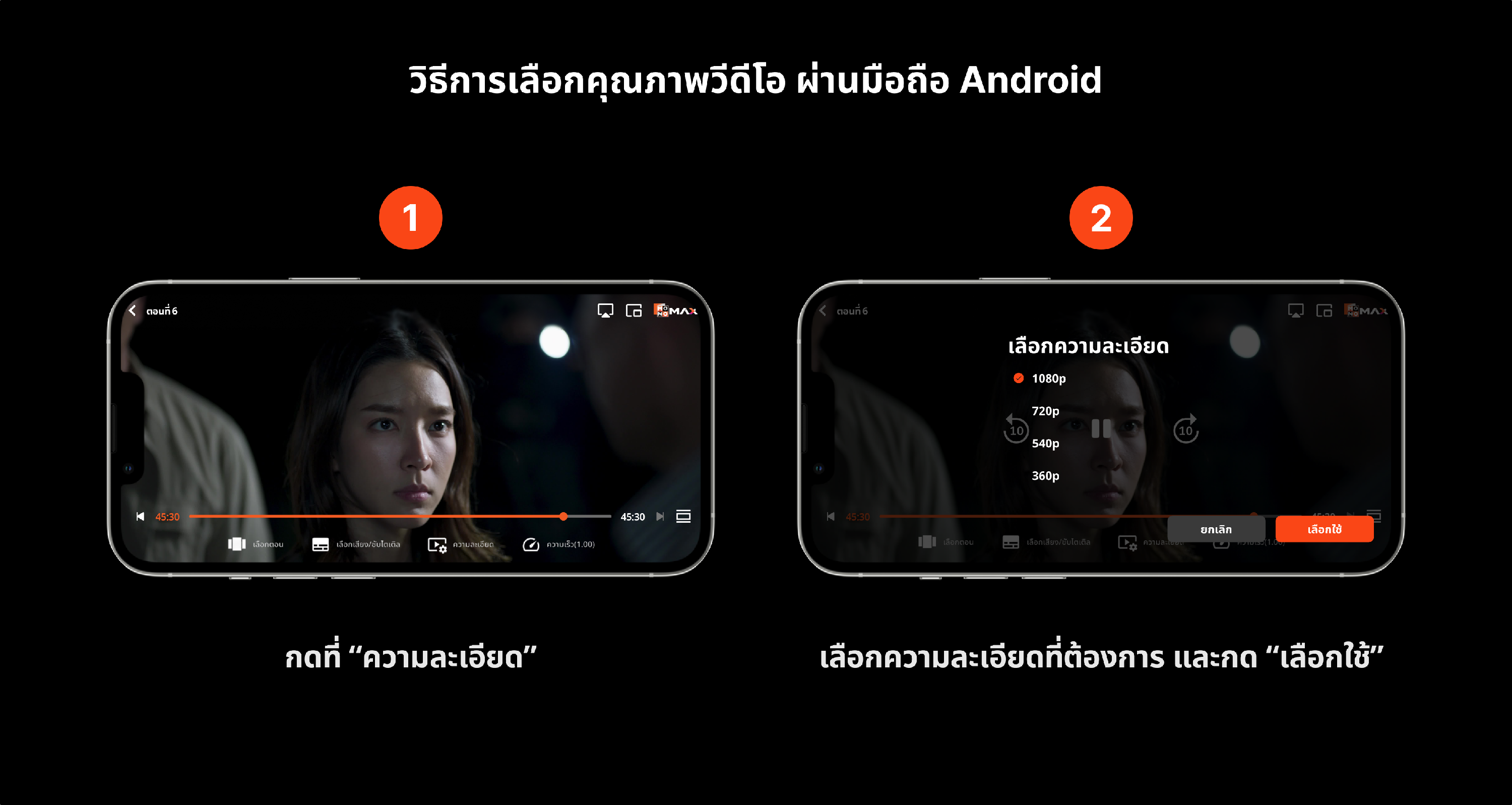 *หมายเหตุ : อุปกรณ์มือถือ iOS, Android TV และ Smart TV ไม่สามารถปรับคุณภาพวีดีโอได้