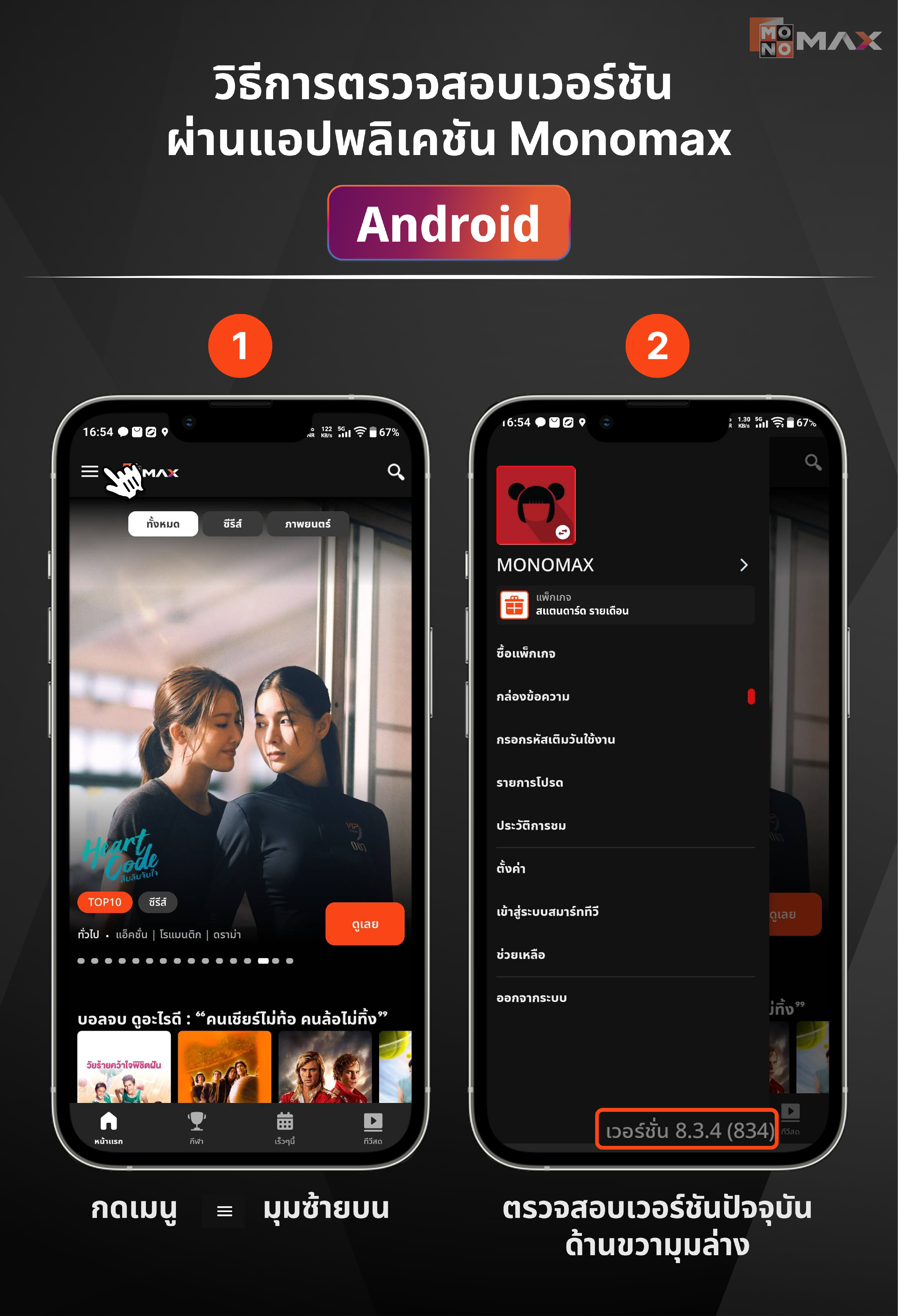 วิธีการตรวจสอบเวอร์ชันผ่านแอปพลิเคชัน Monomax บน Android
