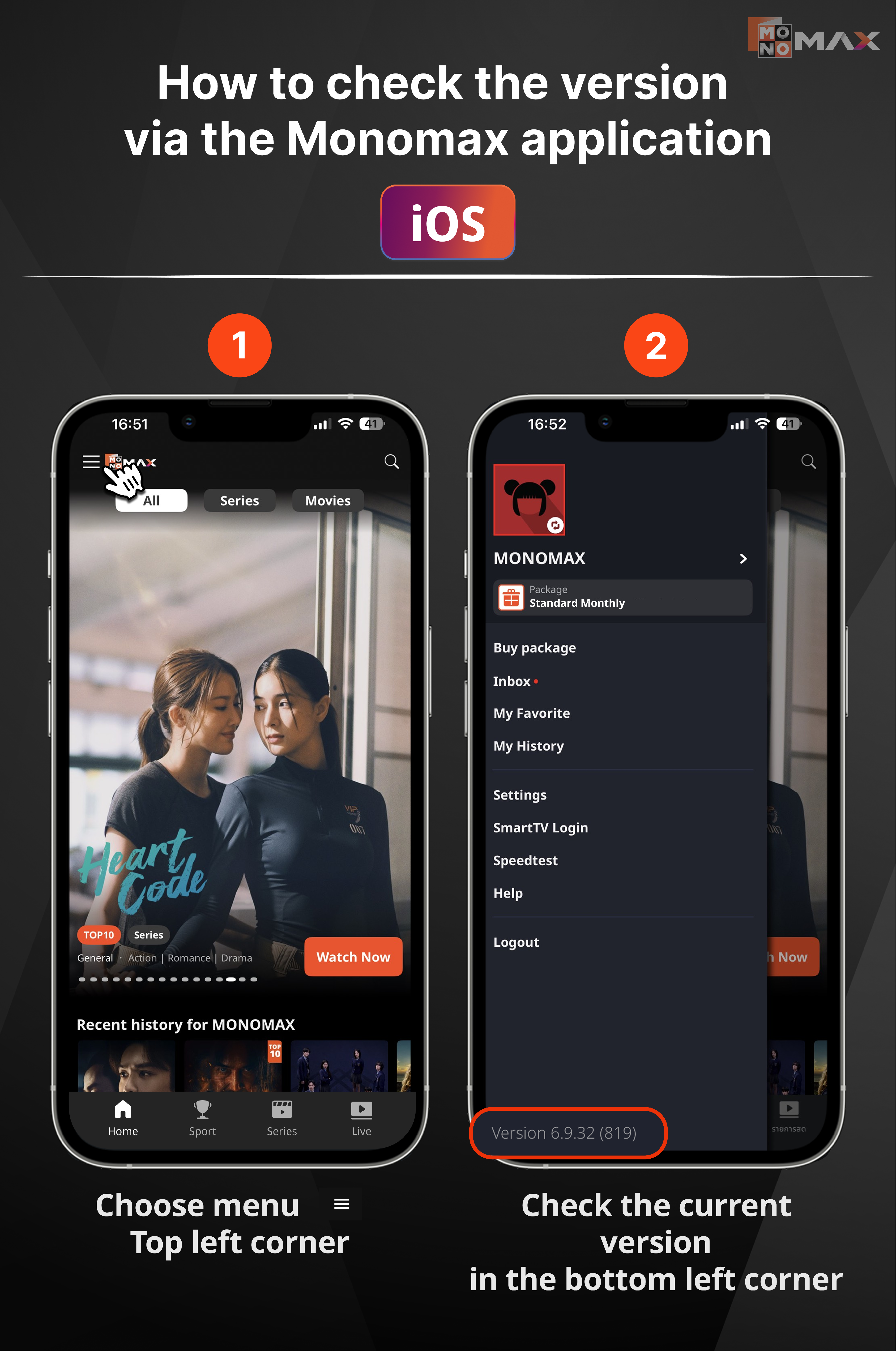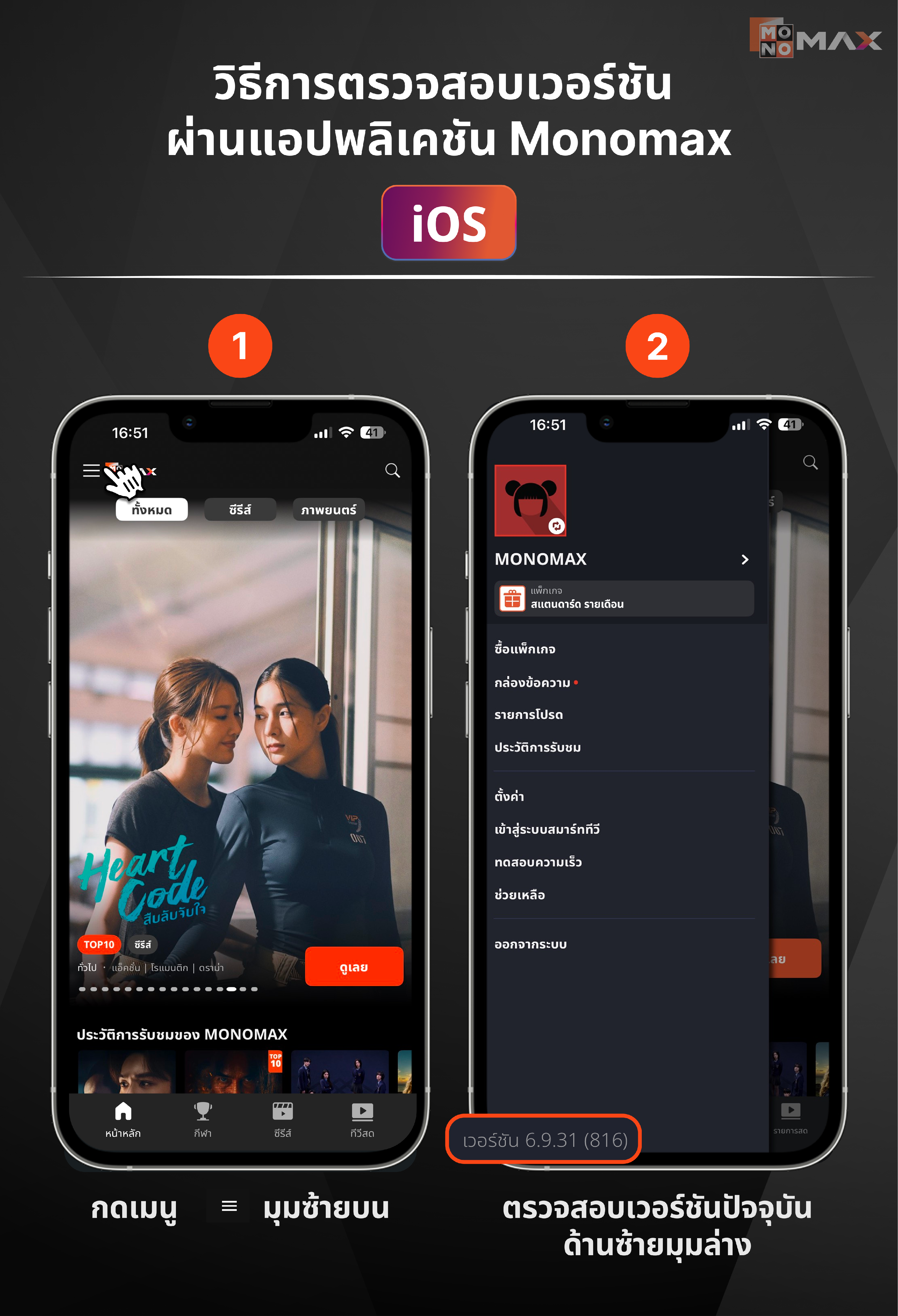วิธีการตรวจสอบเวอร์ชันผ่านแอปพลิเคชัน Monomax บน iOS