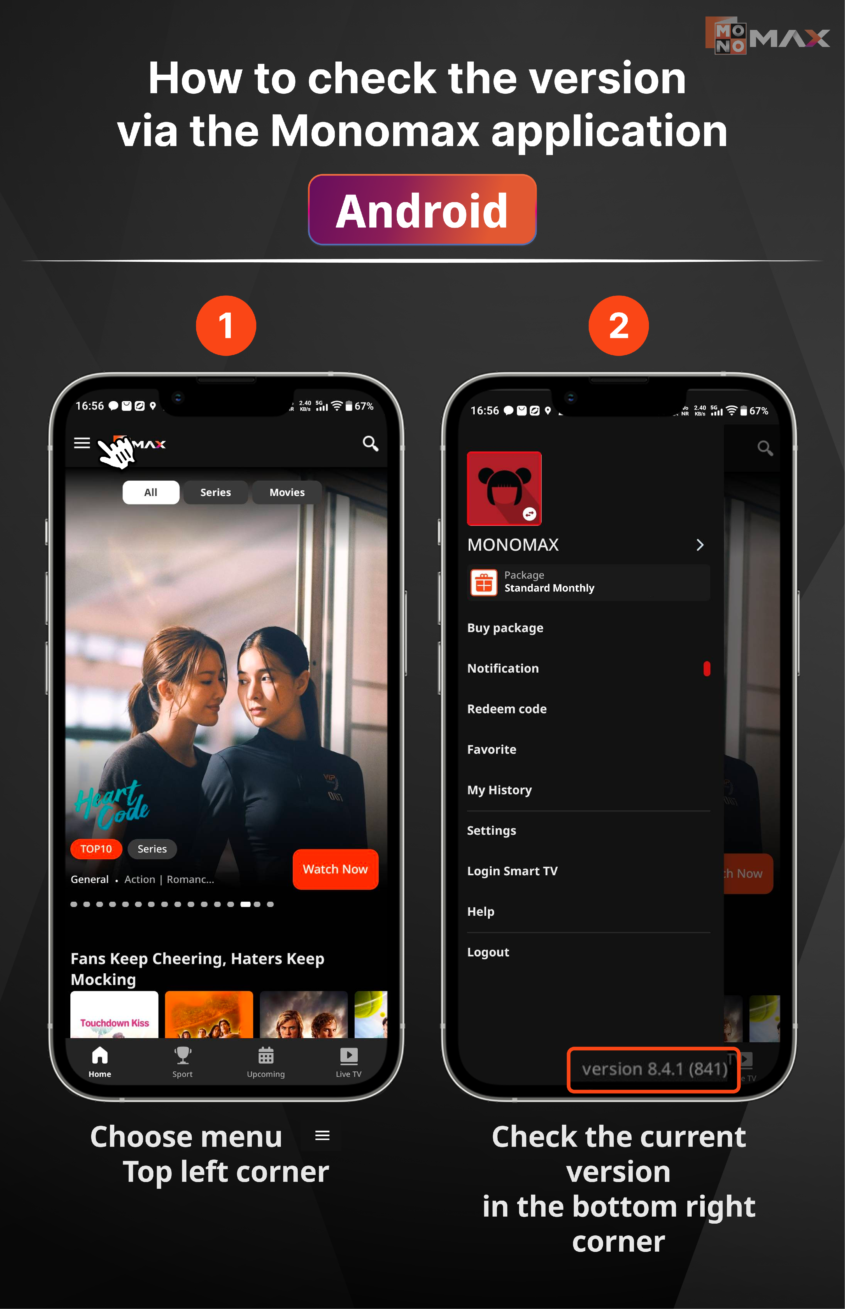 Cách kiểm tra phiên bản qua ứng dụng Monomax Android