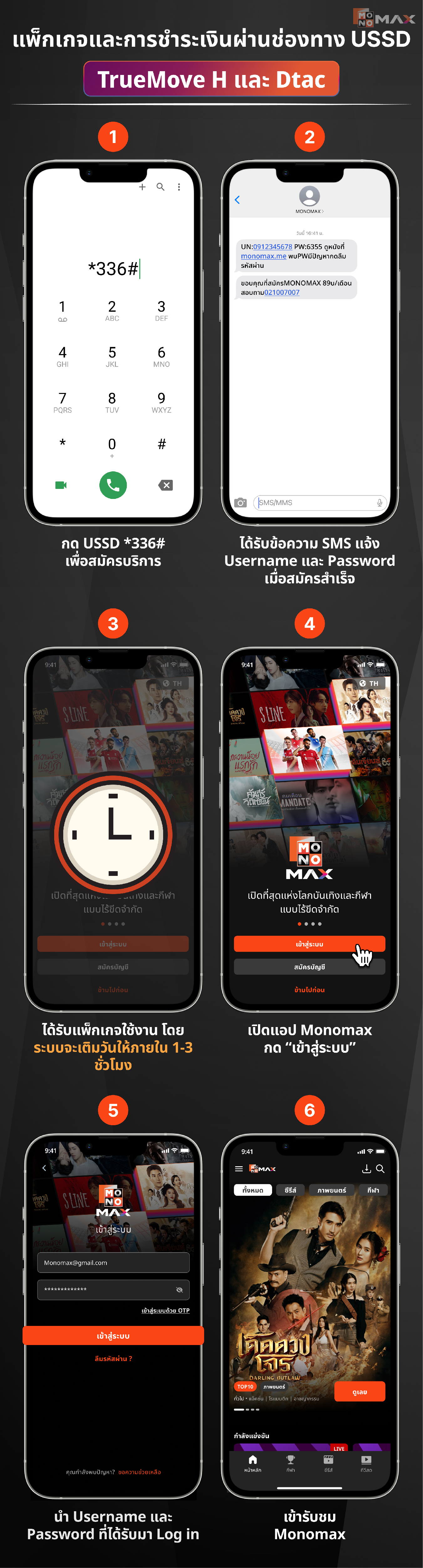 สมัครผ่าน USSD และชำระเงินด้วยเบอร์ Truemove H & Dtac