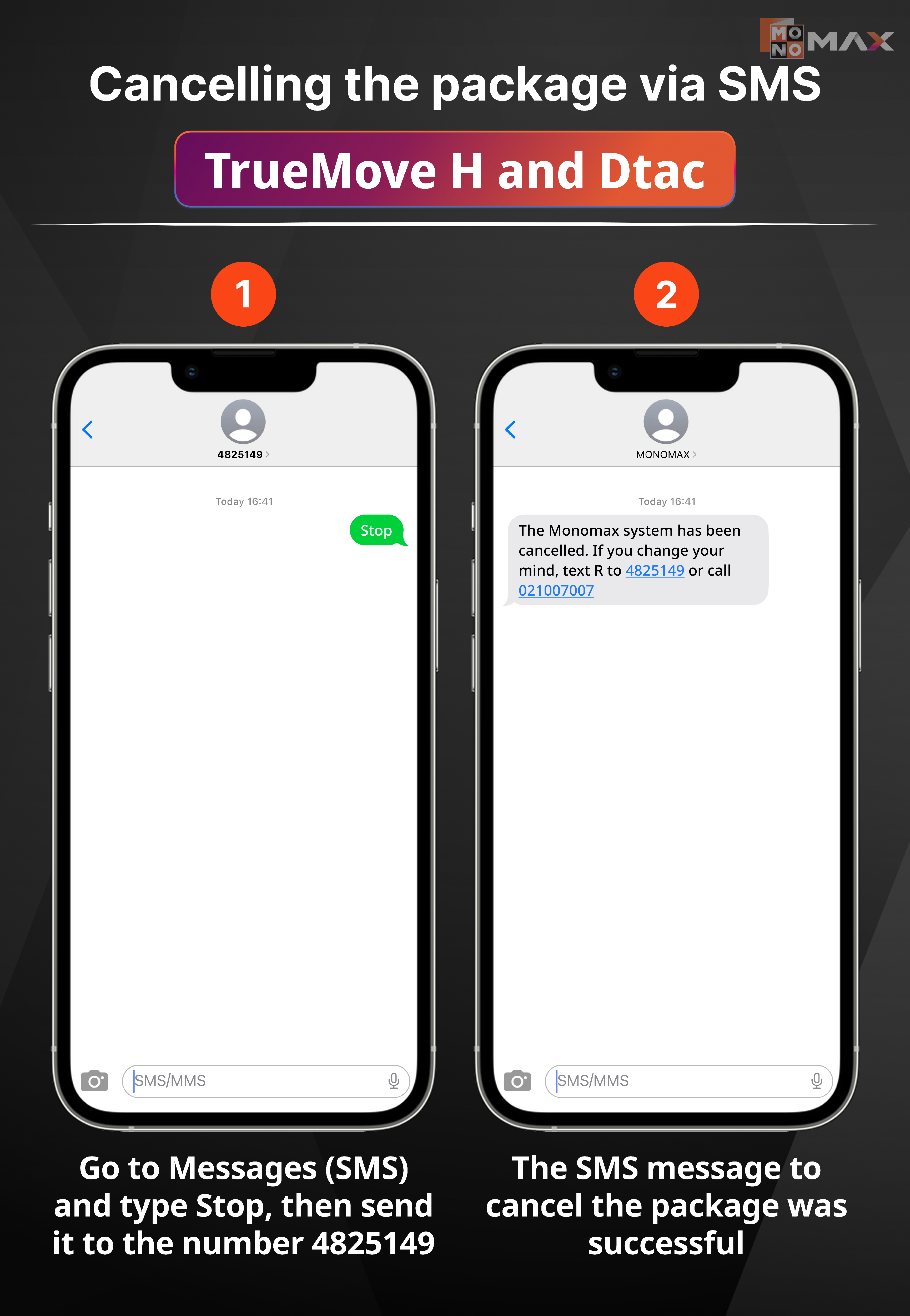 Steps to cancel via SMS for TrueMove H & Dtac customers