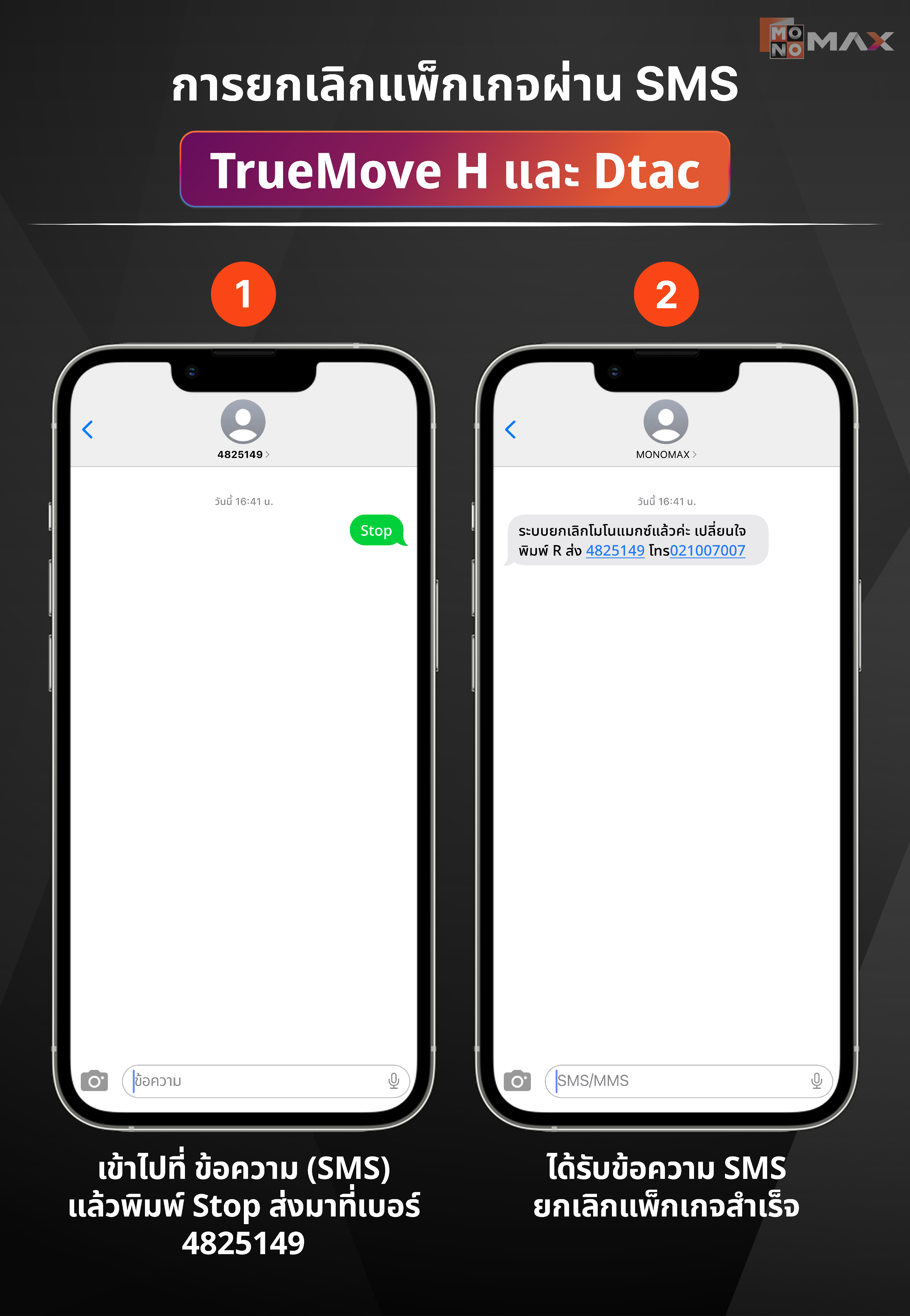 ขั้นตอนการยกเลิกผ่าน SMS สำหรับลูกค้า TrueMove H & Dtac