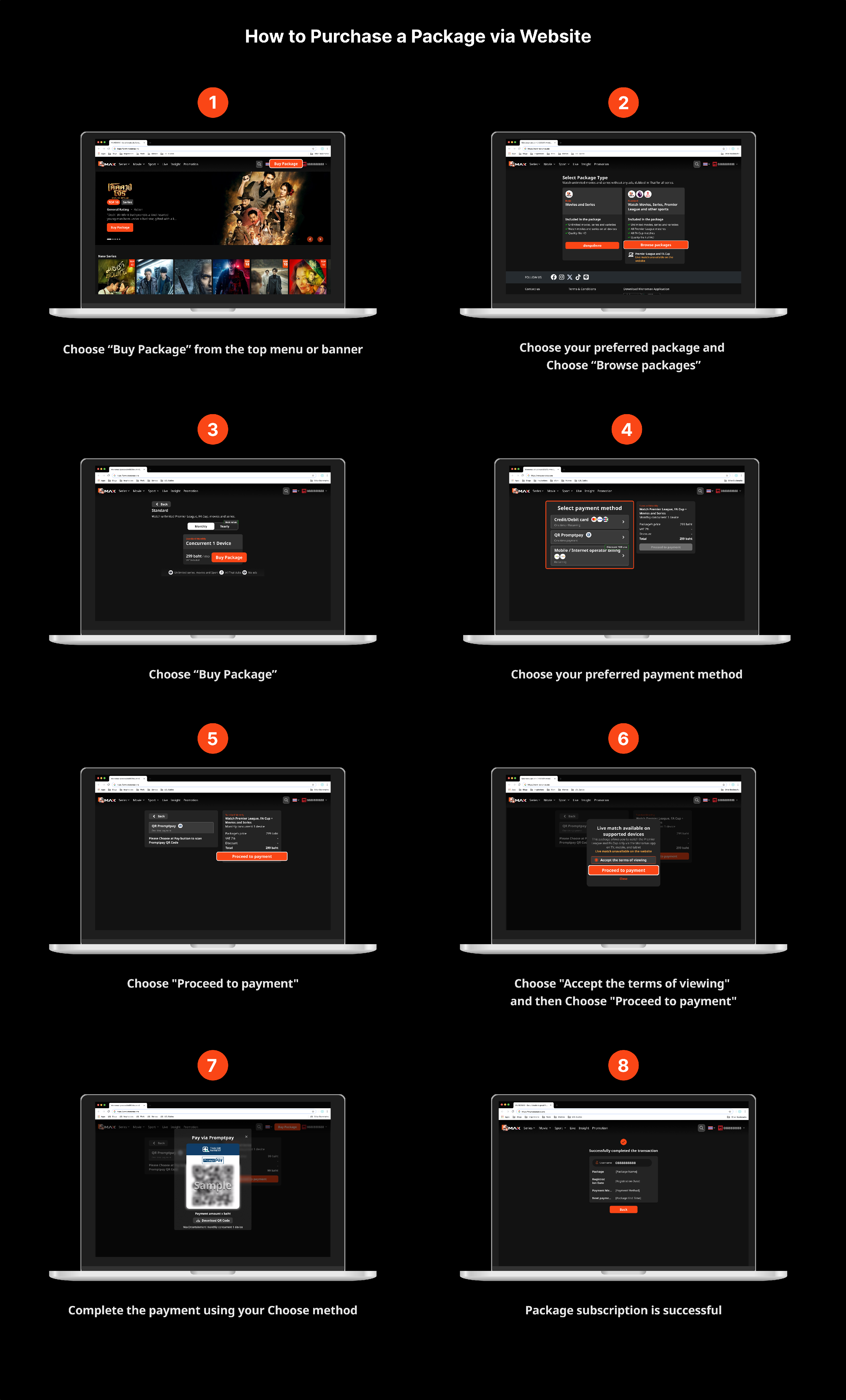 Steps to purchase a package and make payment through the website