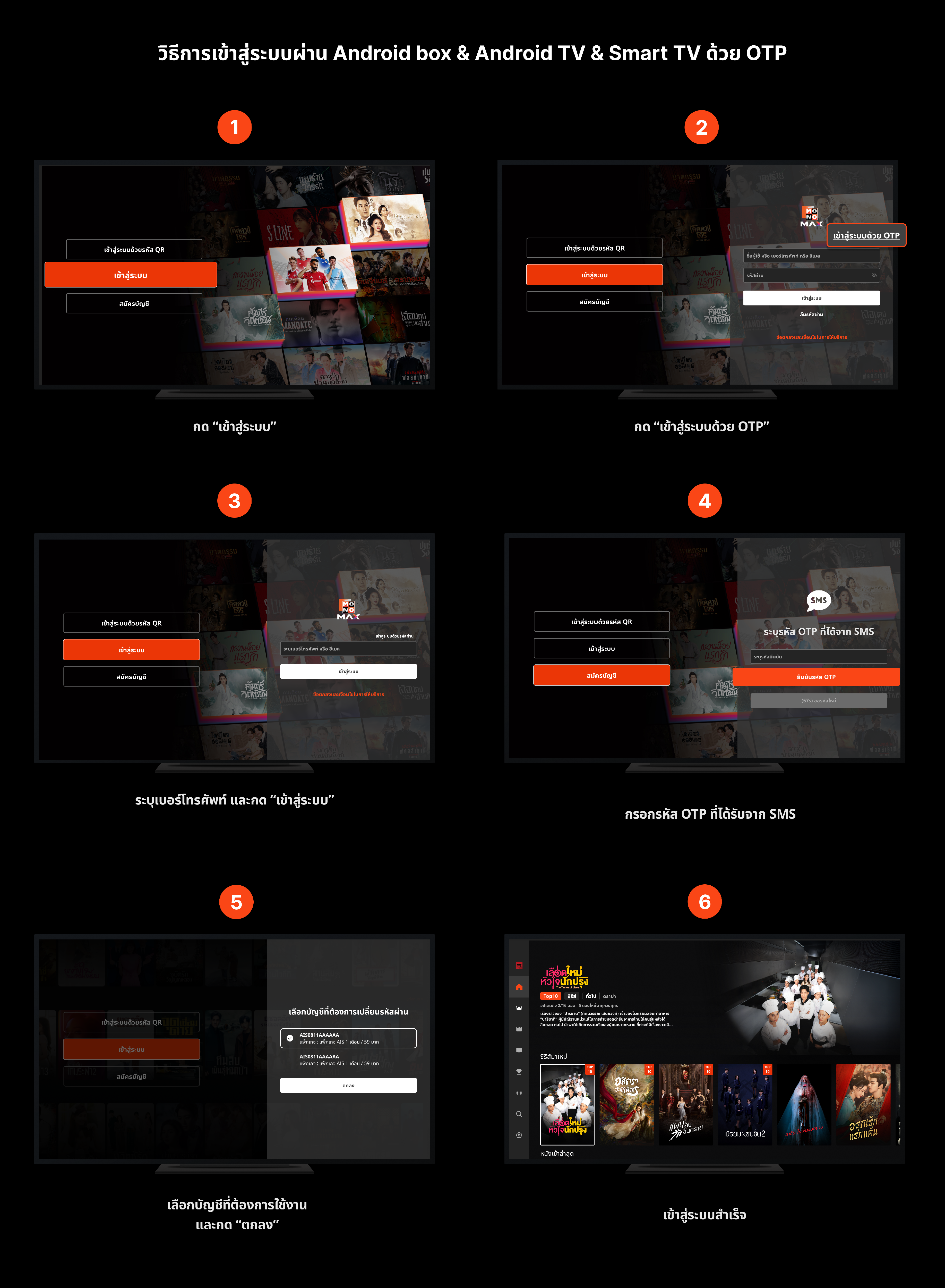 การเข้าสู่ระบบผ่าน Android box & Android TV & Smart TV ด้วย OTP