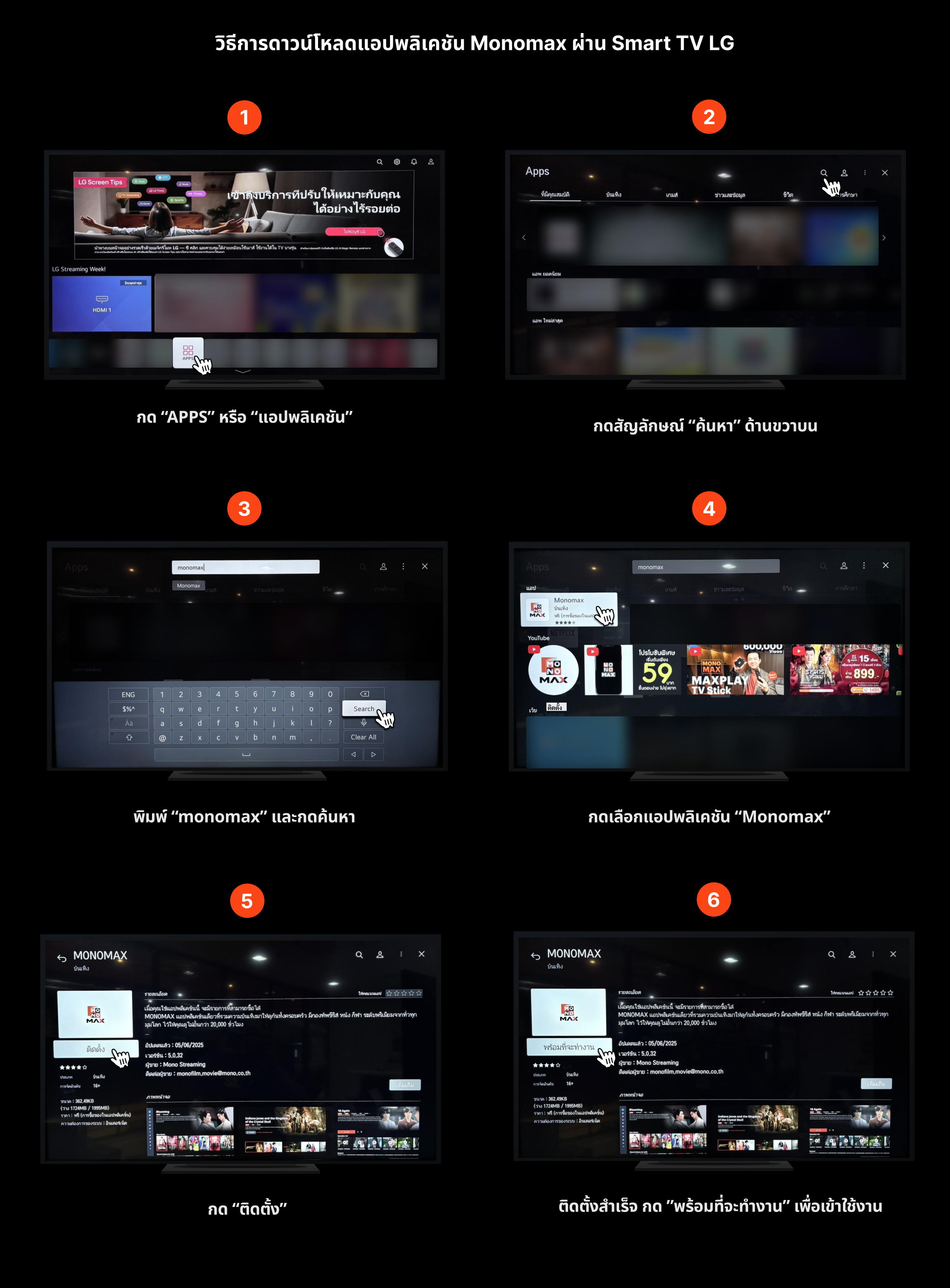 วิธีการดาวน์โหลดแอปพลิเคชัน Monomax ผ่าน Smart TV LG