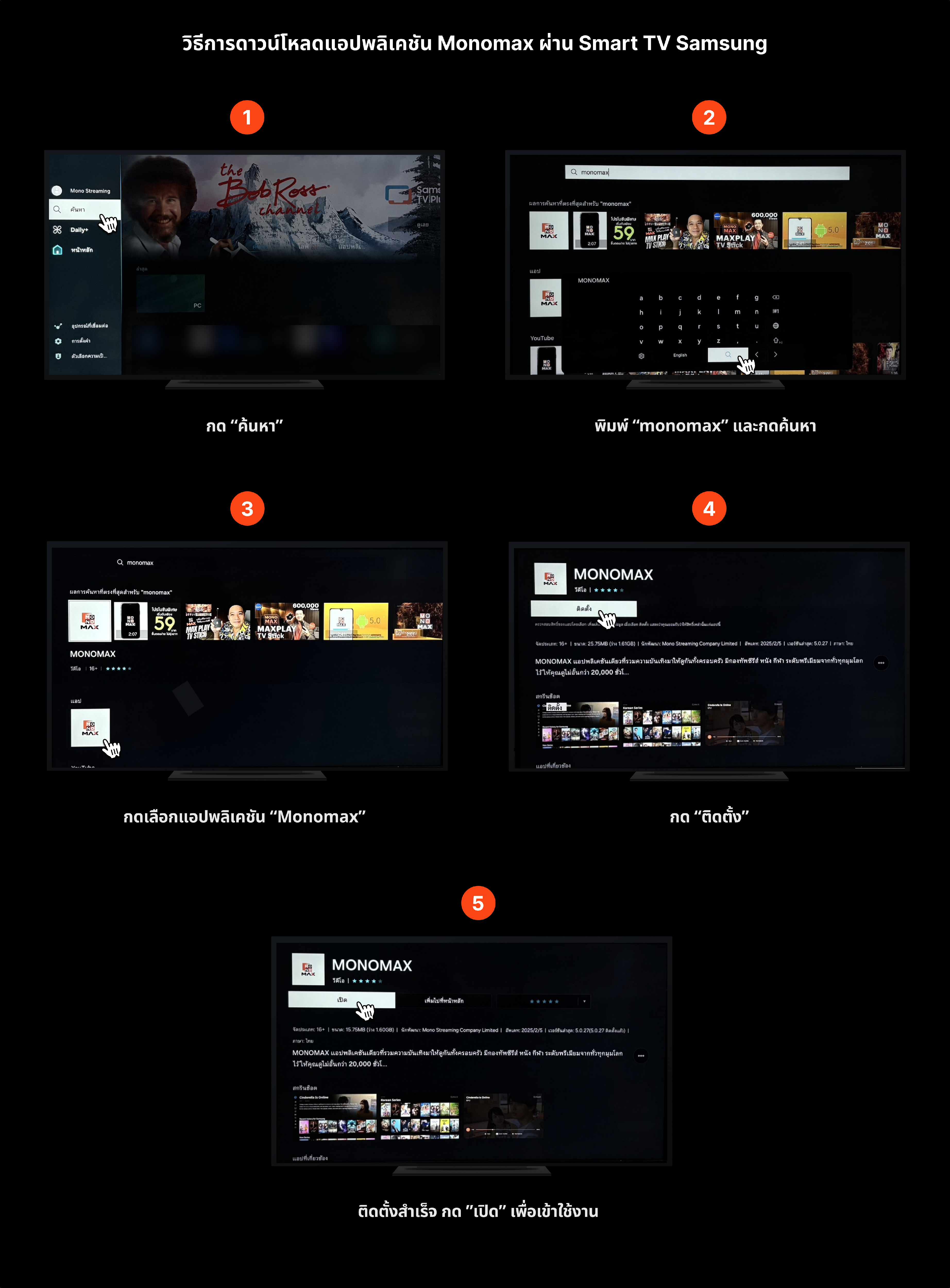 วิธีการดาวน์โหลดแอปพลิเคชัน Monomax ผ่าน Smart TV Samsung